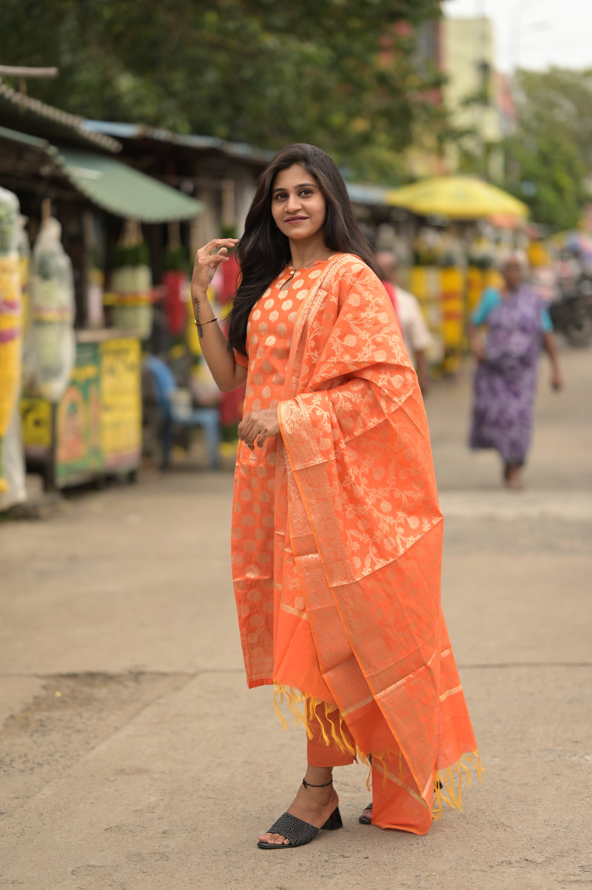 ORANGE JACQUARD SALWAR SUIT